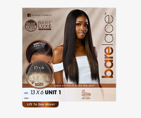 Meet effortless beauty with the Bare Lace Sensationnel Glueless Lace Wig 13x6 Unit 1 in Natural Black. Designed for comfort and convenience, this unit features a wide 13x6 lace area that gives you versatile parting options and a natural-looking hairline. The glueless design means no adhesive is needed—just slip it on and enjoy a secure, breathable fit that feels effortless all day.